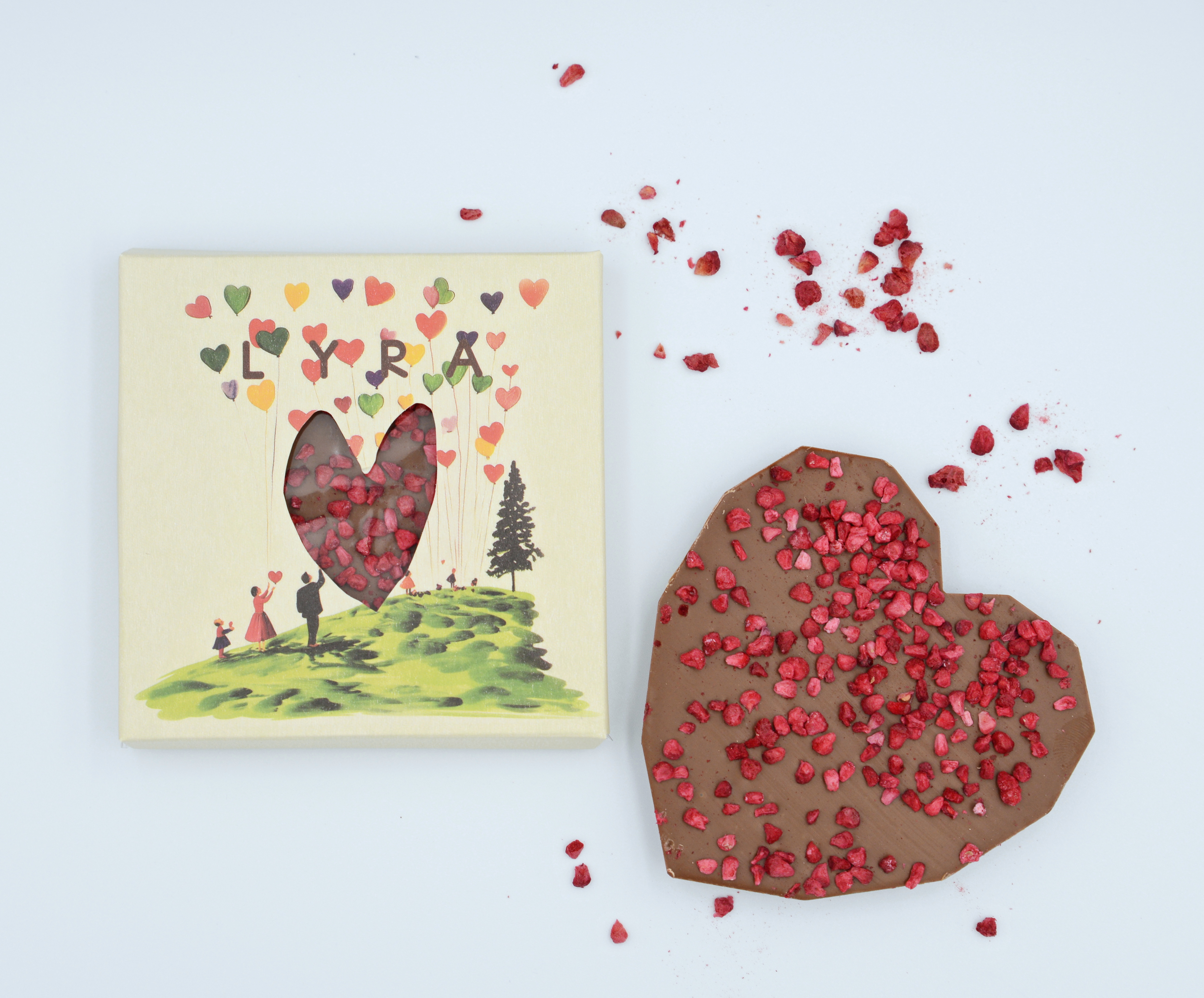 Mliečna čokoláda v tvare SRDCA s posypom malina.