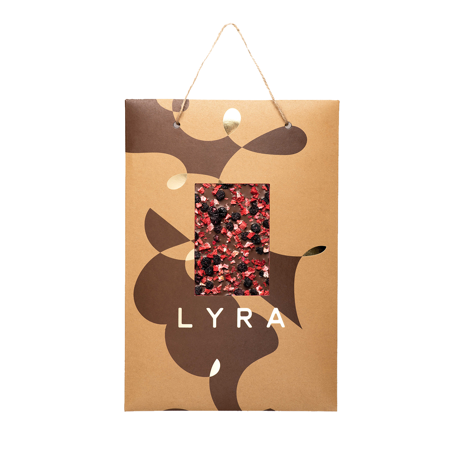 300g prémiovej kolumbijskej mliečnej čokolády posypanej ingredienciami ako napr: lyofilizované jahody, maliny, fialkovékvety, ružové kvety, mätové lístky…