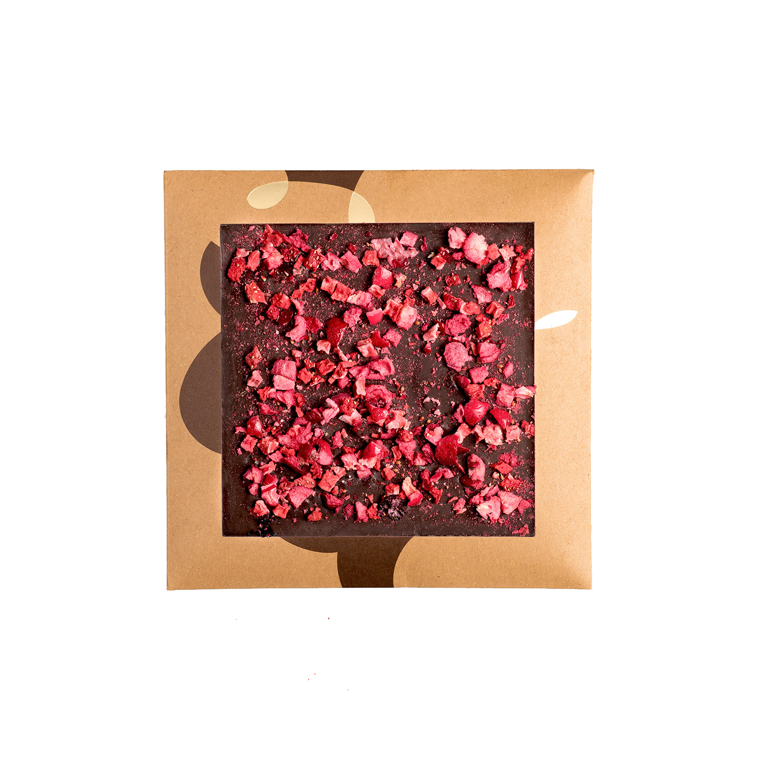 V Južnej Amerike vyrástla, na Slovensku dospela. Naša horká čokoláda je bohato sypaná sušenými jahodami a brusnicami. Spája v sebe podmanivú chuť horkej čokolády a osviežujúcu chuť ovocia. Je vyrobená z kakaa Fino de Aroma od bôbu až k výslednej tabuľke čokolády rozdelenej na osem častí. Lebo také je naše Slovensko. Každý kraj chutí inak a pre každý máme jeden kúsok.