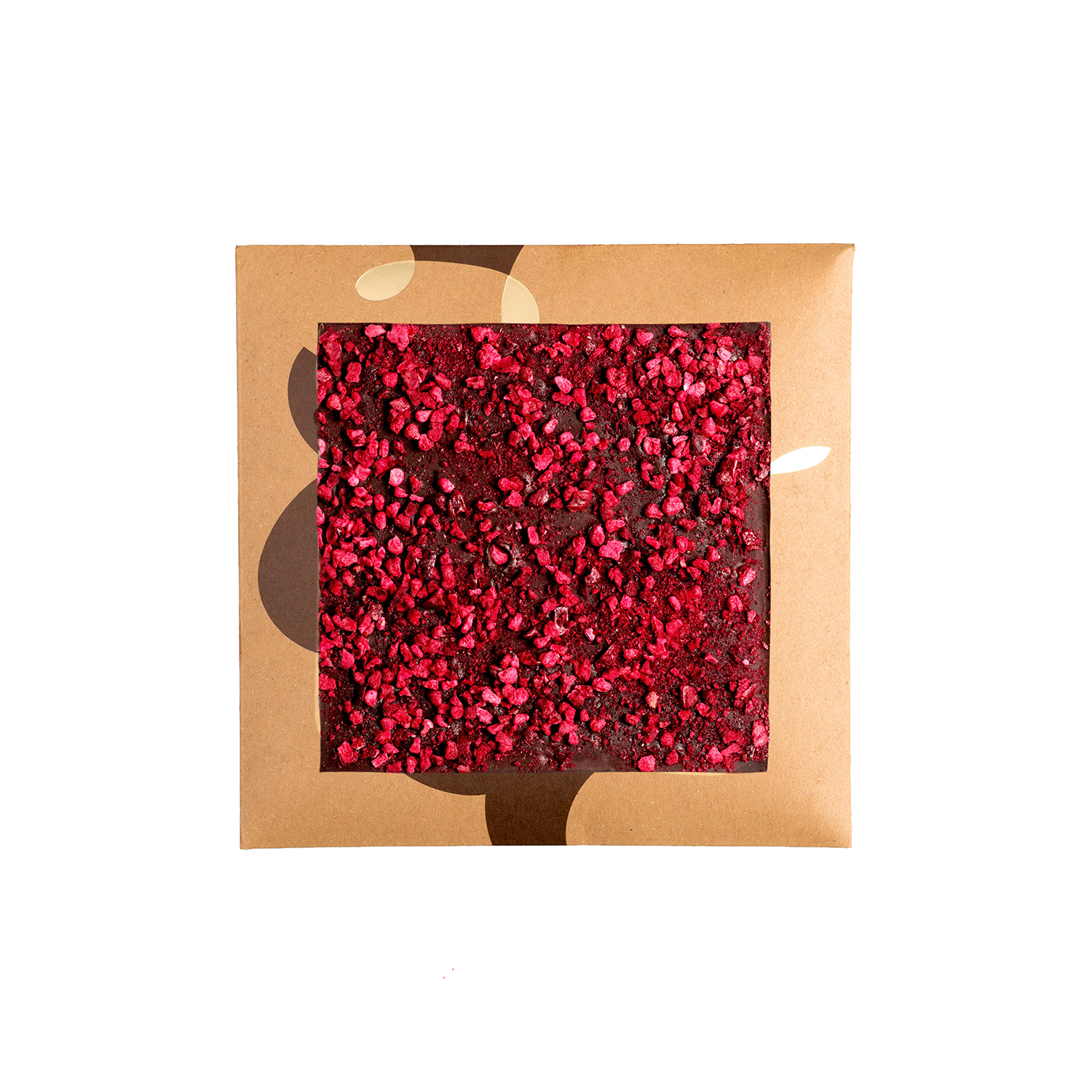 V Južnej Amerike vyrástla, na Slovensku dospela. Naša mliečna čokoláda je bohato sypaná sušenými višňami a malinami. Spája v sebe sladkú chuť mliečnej čokolády a osviežujúcu chuť ovocia. Je vyrobená z kakaa Fino de Aroma od bôbu až k výslednej tabuľke čokolády rozdelenej na osem častí. Lebo také je naše Slovensko. Každý kraj chutí inak a pre každý máme jeden kúsok.