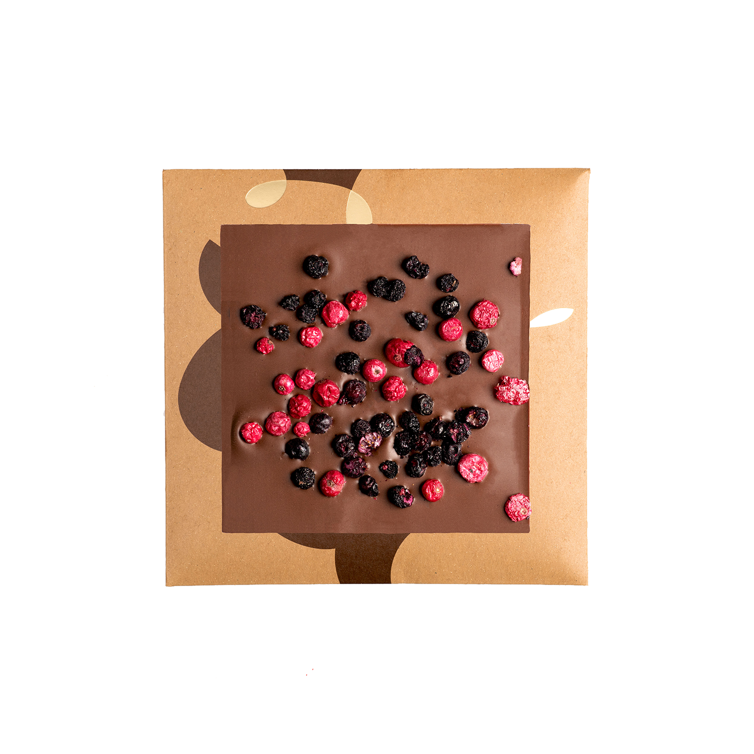 Mliečna čokoláda s posypom čučoriedka a ríbezľa.
