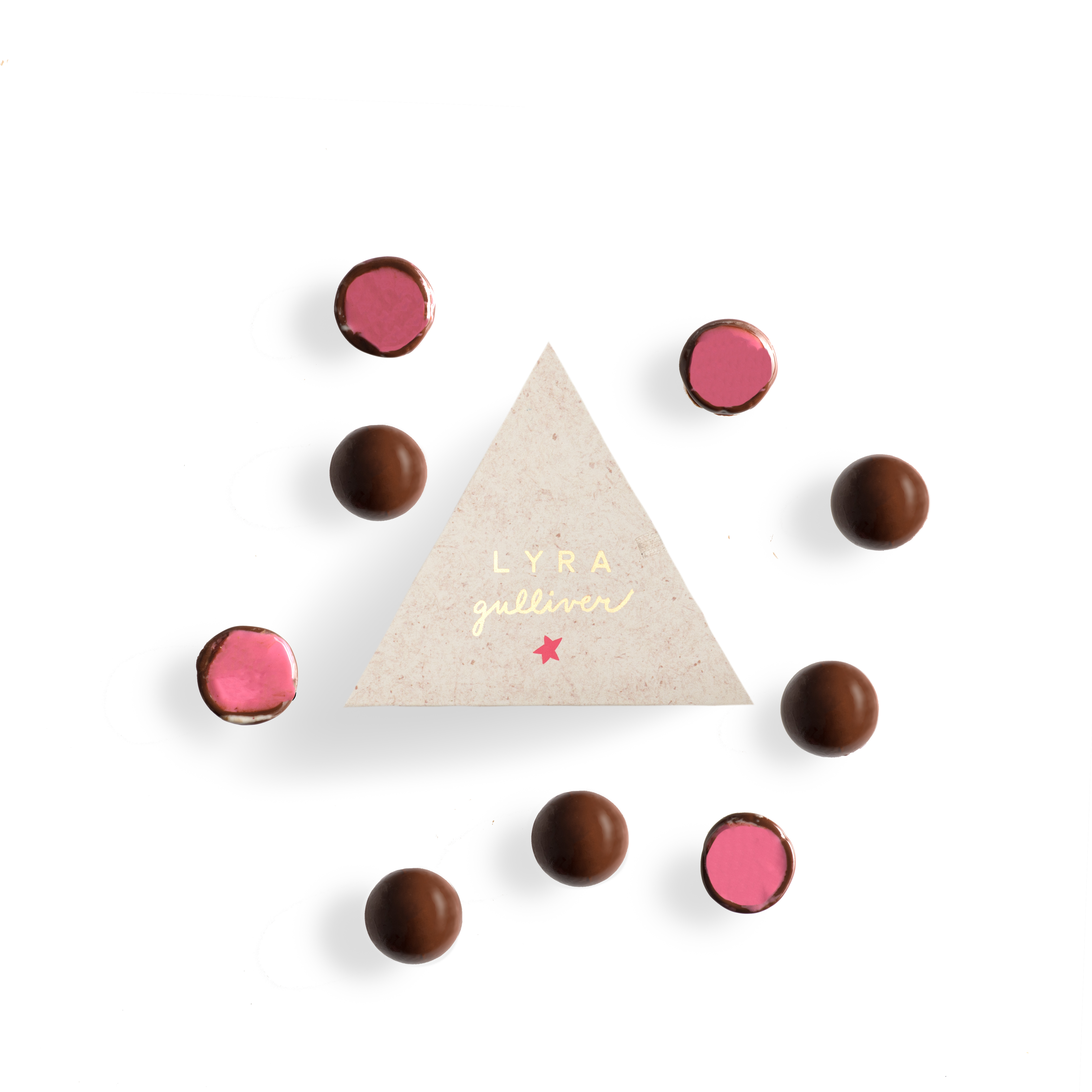 Neodolateľné guľôčky jemnej horkej čokolády so šťavnatou plnkou. Oddajte sa explózii chutí a budete mať pocit, že svet je krajší. Podmanivá príchuť maliny Vás prenesie do letnej ovocnej záhrady plnej slnečných lúčov.